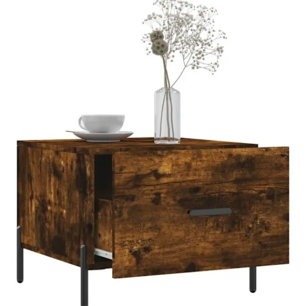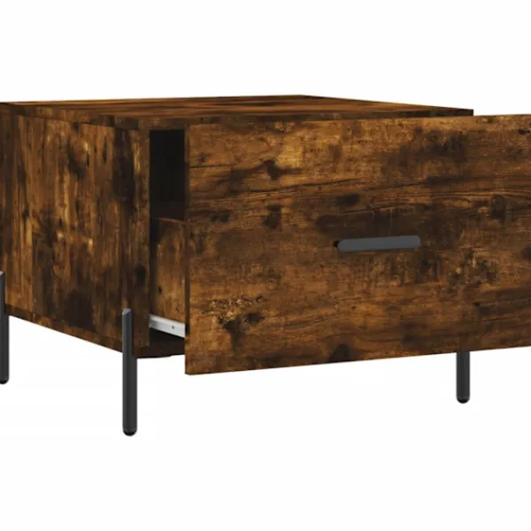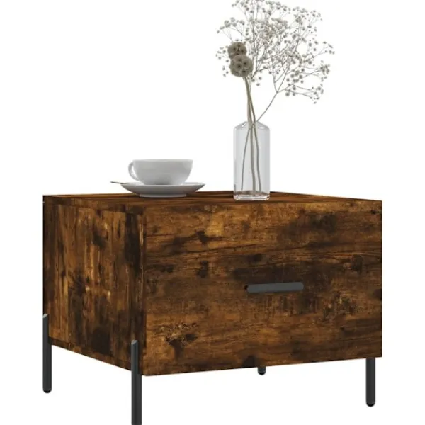 Få en elegant känsla i ditt vardagsrum med detta snygga soffbord. Hållbart material: Det konstruerade träet är av exceptionell kvalitet med slät yta och är också starkt, stabilt och fuktbeständigt.Gott om förvaringsutrymme: Detta sidobord har en låda med gott om förvaringsutrymme för att hålla dina tillhörigheter organiserade och inom räckhåll.Robust bordsskiva: Soffbordets robusta bordsskiva är perfekt för att ställa dina drycker, mat och andra dekorativa föremål.Järnben: Järnbenen utstrålar en industriell charm i din inredning samtidigt som du garanteras stabilitet.