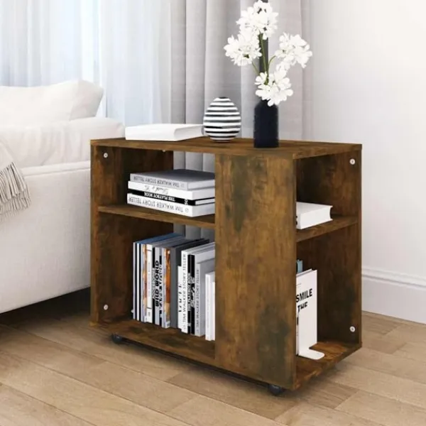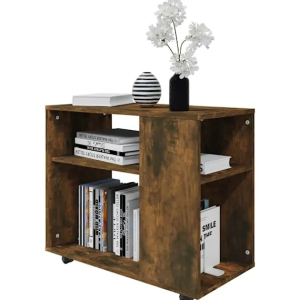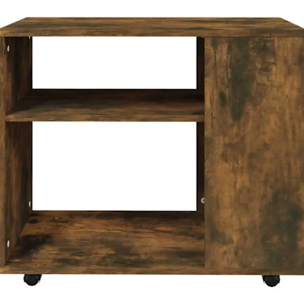 Tillför en lyxig elegans till din inredning med detta snygga sidobord! Rymligt förvaringsutrymme: Förvaringsutrymmet gör det enkelt att hålla saker organiserade.Hjul för smidig förflyttande: Detta soffbord är lätt att flytta runt tack vare hjulen.Lättskött: Det konstruerade träet är av exceptionell kvalitet med en slät yta som är stark, stabil och är beständig mot fukt. Det är tillverkat av konstruerat trä och är enkelt att rengöra.