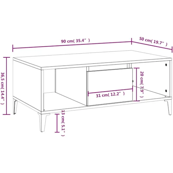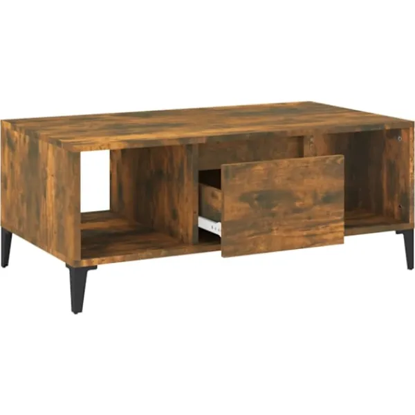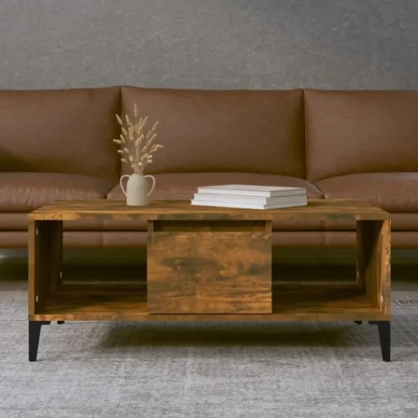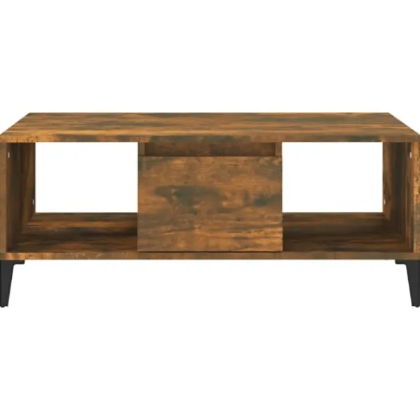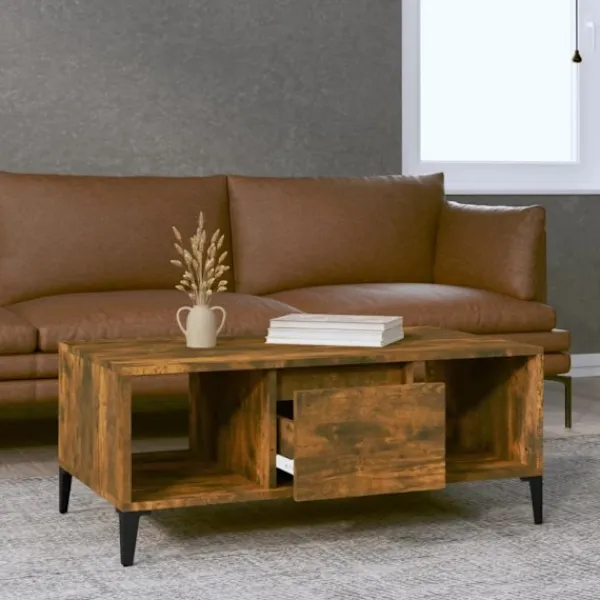 Detta soffbord utstrålar en industriell charm i din inredning och har gott om förvaringsutrymme! Hållbart material: Det konstruerade träet är av exceptionell kvalitet med slät yta och är också starkt, stabilt och fuktbeständigt.Gott om lagringsutrymme: Med 1 låda och 2 öppna fack har sidobordet gott om lagringsutrymme för böcker, multimediaapparater och andra föremål.Praktisk ovansida: Soffbordets robusta bordsskiva är perfekt för att visa dekorativa föremål, fotoramar eller krukväxter.Metallfötter: Metallfötterna ger din inredning ett lugn stil samtidigt som de säkerställer stabilitet. Observera:Varje produkt levereras med en monteringsmanual i lådan för enkel montering.