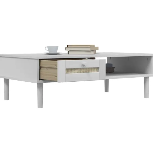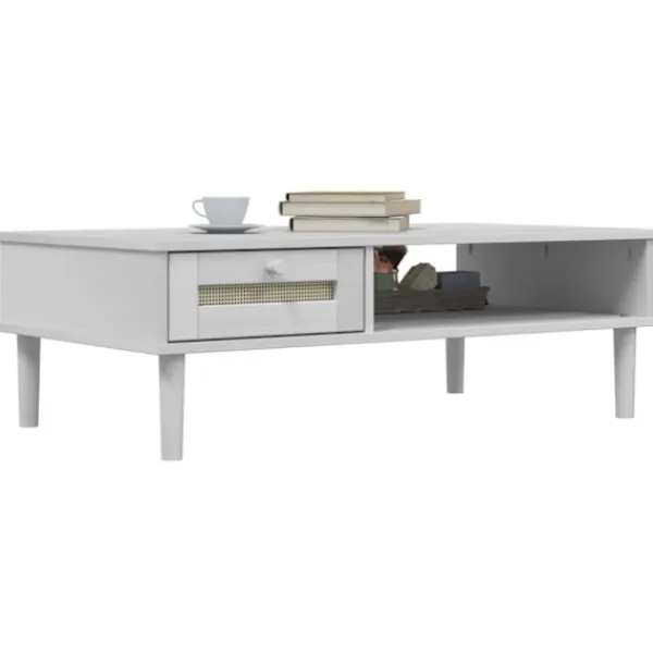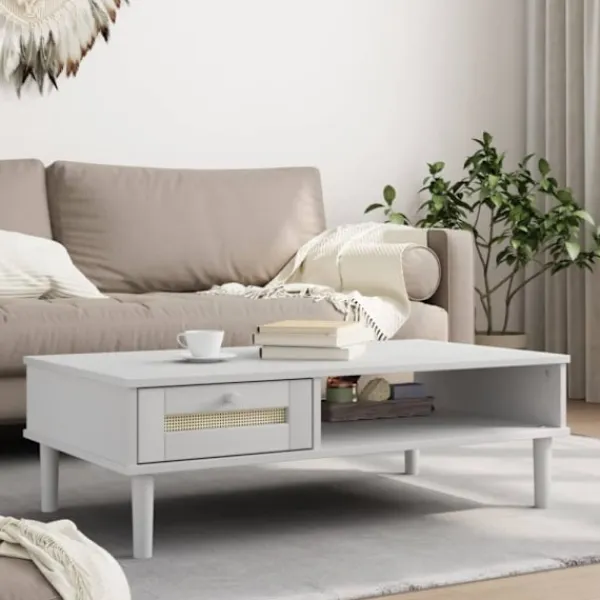 - Yta i rottingutseende: Soffbordets lådfront är handgjord av konstrotting, en tvåfärgad blandning av modernt och boho från mitten av århundradet som ger en mysig men ändå elegant touch i din inredning.