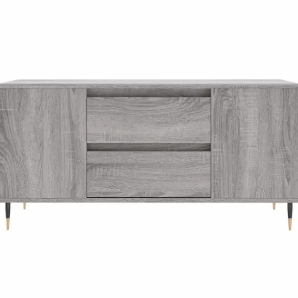 Få en elegant känsla i ditt vardagsrum med detta snygga soffbord. Hållbart material: Det konstruerade träet är av exceptionell kvalitet med slät yta och är också starkt, stabilt och fuktbeständigt. Det är tillverkat av konstruerat trä och är lätt att rengöra med en fuktig trasa.Gott om förvaringsutrymme: Detta soffbord har 2 lådor och 4 fack, med gott om förvaringsutrymme för att hålla dina tillhörigheter organiserade och inom räckhåll.Robust bordsskiva: Den robusta bordsskivan är perfekt för att placera dina drycker, mat och andra dekorativa föremål.Metallben: Metallbenen utstrålar en modern och lugn charm i din inredning samtidigt som du garanteras stabilitet. Varning:För att förhindra att den välter måste denna produkt användas tillsammans med det medföljande väggfästet.