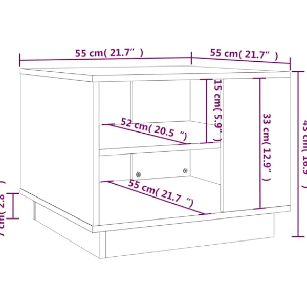 Detta soffbord har en modern design och blir en praktisk möbel i ditt vardagsrum. Konstruktionen av detta soffbord säkerställer dess robusthet, hållbarhet och långvariga service. Tack vare hyllorna har soffbordet gott om förvaringsutrymme. Den robusta bordsskivan är perfekt för att placera dina drycker, mat och andra dekorativa föremål. Dessutom är mittbordet lätt att rengöra med en fuktig trasa.