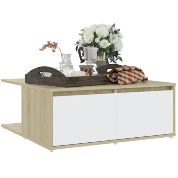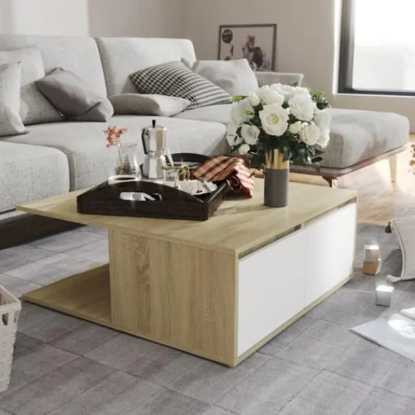 Bordet är stabilt och hållbart för en lång tid. Dess robusta bordsskiva ger en säker yta där du kan placera drycker, vaser, fruktskålar eller prydnadsföremål. Detta bord har också gott om förvaringsfack och lådor, som kan användas för att lägga tidskrifter, böcker, fjärrkontroller med mera. Det är lätt att underhålla och rengöra med en fuktig trasa.