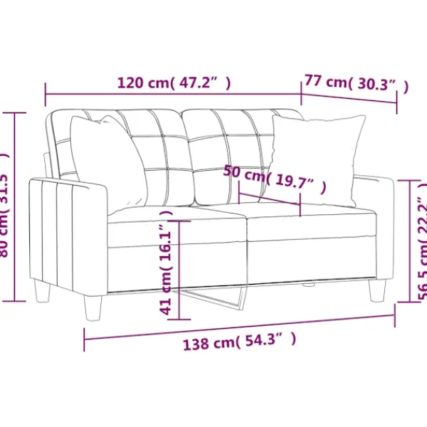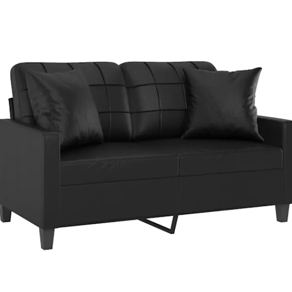 Denna 2-sits soffa, som utmärker sig med sin moderna design och prydnadskuddar, kommer att vara en perfekt plats för att chatta, titta på TV eller bara koppla av. Hållbart konstläder: Premium konstläder är ett högst slitstarkt material. Den är fläckbeständig, vilket gör den enkel att rengöra med en fuktig trasa. Den släta ytan har också ett lyxigt utseende.Robust och stabil ram: Metallramen garanterar robusthet och stabilitet.Prydnadskuddar med innerkudde: Dessa soffkuddar levereras med innerkuddar i PP boumull, så att du slipper köpa dem separat.Bekväm sittupplevelse: Soffan är mycket bekväm tack vare det tjockt vadderade sätet, armstöden och ryggkuddarna. Dessutom kan de dekorativa kuddarna ge extra komfort när du sitter eller ligger.