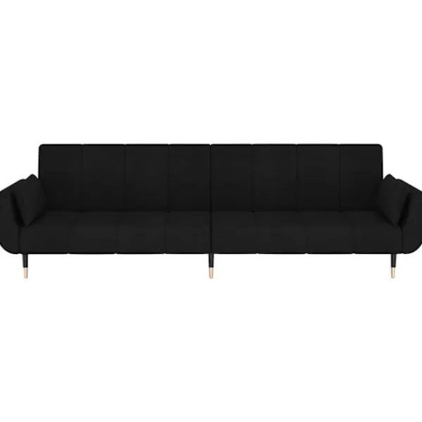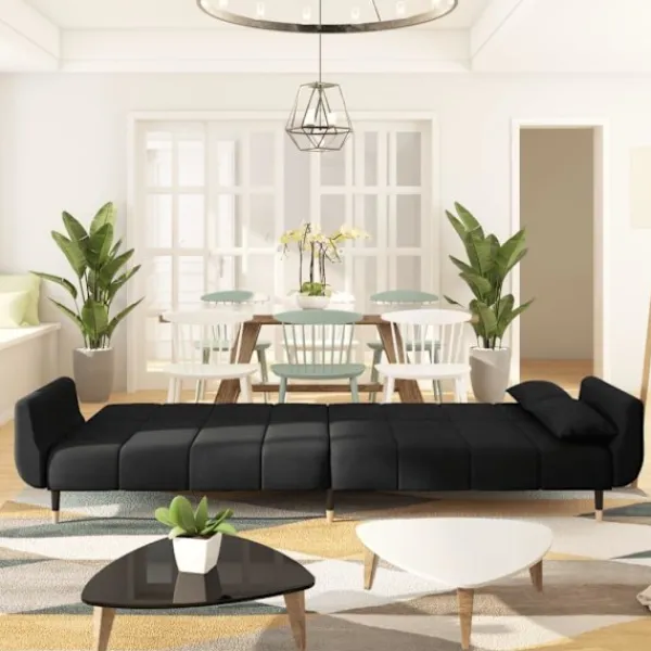 Denna bäddsoffa har en konvertibel design. Så du kan välja mellan en sittande, vilande eller sovande position enligt dina önskemål och behov. Det är den perfekta möbeln om du behöver extra sovplats för dina vänner och gäster över natten. Mjukt och skönt material: Mjukt sammetstyg med fin texturJusterbart ryggstöd: Du kan luta ner de två separata ryggstöden, för att skapa en ideal plats att sova eller vila på.Stadig och stabil: Träramen och metallbenen säkerställer stabilitet.Två kuddar för komfort : Två kuddar ingår.
