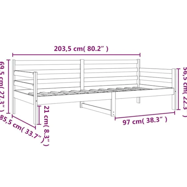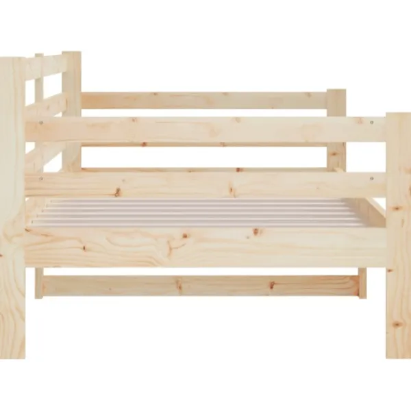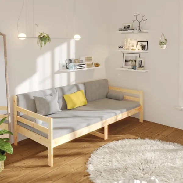 Denna mångsidiga dagbädd i trä kan användas som säng i ditt sovrum och passar också perfekt som soffa i ditt vardagsrum. Det passar dina olika behov perfekt och har gott om plats för dig att sova eller vila. Massivt furuträ: Massivt furuträ är ett vackert naturmaterial. Furuträ har raka fibrer, och knutarna ger materialet sin rustika utstrålning. Denna gästbädd är gjord av massivt furuträ, som är mer stabilt och hållbart. 3-sidiga sängskenor: Denna övernattningssäng har en sängskenor på sidan av sängen, vilket ger en känsla av säkerhet och gör den fin. Ribbotten: Dess ribbotten bidrar till bättre luftcirkulation för att hålla madrassen fräschare längre, vilket förbättrar sängens viktkapacitet och säkerställer stabilitet. Multifunktionell bäddsoffa: Denna dagbädd i trä kan användas som soffa under dagen eller som säng på natten, vilket är en snabb lösning för övernattande gäster. Extra förvaringsutrymme: Få ut det mesta av utrymmet under bäddsoffan för att lagra olika föremål. Perfekt för förvaring av lådor för att organisera dina kläder, leksaker eller täcken. Observera: Observera att leveransen endast består av dagbädden. Madrass ingår ej. Du kan titta i vår shop för matchande madrasser.Varje produkt levereras med en monteringsmanual i lådan för enkel montering.