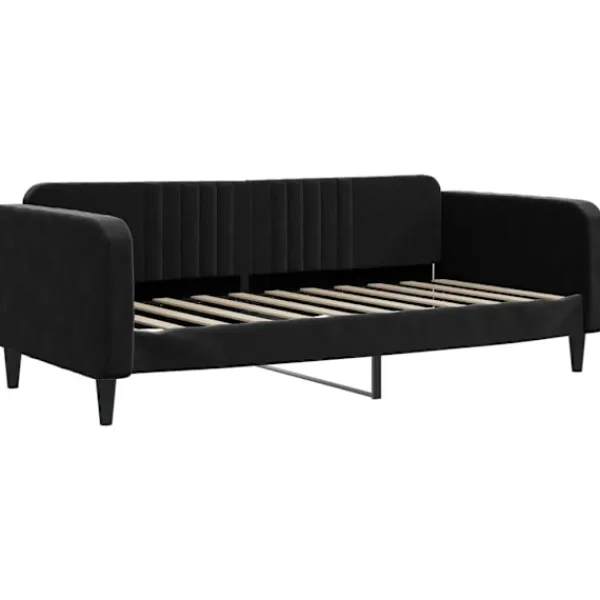 Denna 2-i-1-dagbädd, som fungerar som både en soffa och säng, är ett praktiskt och iögonfallande tillskott till ditt vardagsrum eller sovrum. Mångsidig dagbädd: Bäddsoffan kan användas som en soffa under dagen, eller som en säng på natten för att erbjuda en snabb lösning för övernattande gäster.Bekväm upplevelse: Dagbädden är gjord av sammet. Det är ett mjukt och skönt tyg som känns skönt mot huden. Dessutom är ryggstödet och armstöden på gästbädden vadderade med skum för att förbättra sittupplevelsen.Robust och stabil ram: Huvudramen på bäddsoffan är gjord av metall och massivt trä, vilket gör den mycket robust och hållbar. Dess ribbotten i plywood bidrar till bättre luftcirkulation för att hålla madrassen fräschare längre, vilket förbättrar sängens viktkapacitet och säkerställer stabilitet.Modern design: Bäddsoffan har en modern design med rena linjer och ett minimalistiskt och lätt utseende, vilket kommer att tillföra en modern stil till din interiör! Bra att känna till:Madrass ingår inte med sängen. Vi säljer ett urval av madrasser. Du kan titta i vår shop för en matchande madrass.