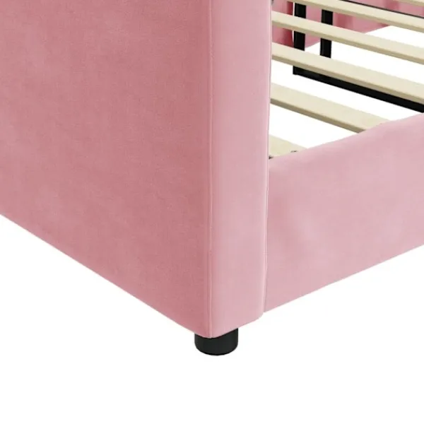Denna 2-i-1-dagbädd, som fungerar som både en soffa och säng, är ett praktiskt och iögonfallande tillskott till ditt vardagsrum eller sovrum. Mångsidig dagbädd: Bäddsoffan kan användas som en soffa under dagen, eller som en säng på natten för att erbjuda en snabb lösning för övernattande gäster.Bekväm upplevelse: Dagbädden är gjord av sammet. Det är ett mjukt och skönt tyg som känns skönt mot huden. Dessutom är ryggstödet och armstöden på gästbädden vadderade med skum för att förbättra sittupplevelsen.Robust och stabil ram: Huvudramen på bäddsoffan är gjord av metall och massivt trä, vilket gör den mycket robust och hållbar. Dess ribbotten i plywood bidrar till bättre luftcirkulation för att hålla madrassen fräschare längre, vilket förbättrar sängens viktkapacitet och säkerställer stabilitet.Modern design: Bäddsoffan har en modern design med rena linjer och ett minimalistiskt och lätt utseende, vilket kommer att tillföra en modern stil till din interiör! Bra att känna till:Madrass ingår inte med sängen. Vi säljer ett urval av madrasser. Du kan titta i vår shop för en matchande madrass.