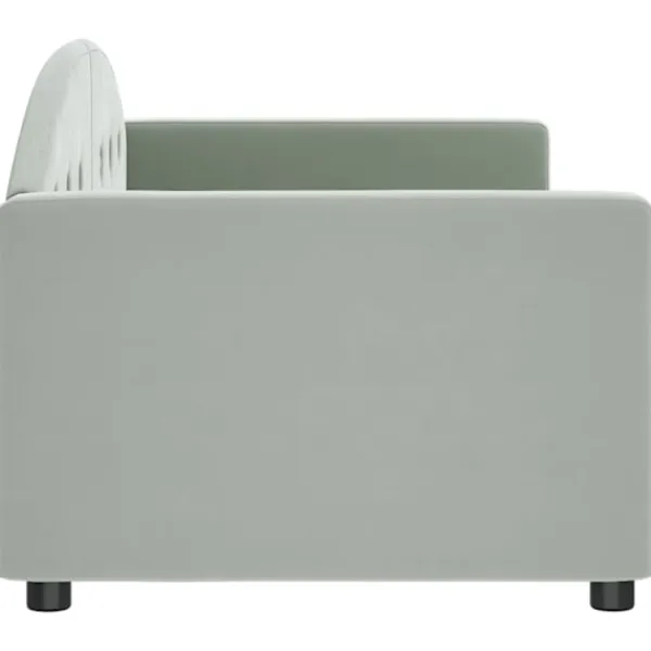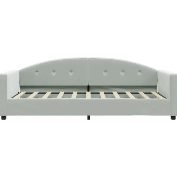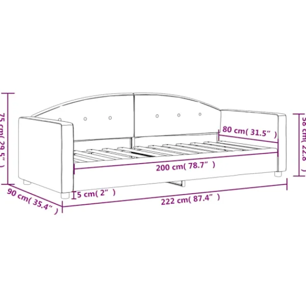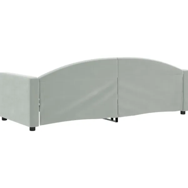 Denna 2-i-1-dagbädd, som fungerar som både en soffa och säng, är ett praktiskt och iögonfallande tillskott till ditt vardagsrum eller sovrum. Mångsidig dagbädd: Bäddsoffan kan användas som en soffa under dagen, eller som en säng på natten för att erbjuda en snabb lösning för övernattande gäster.Bekväm upplevelse: Dagbädden är gjord av sammet. Det är ett mjukt och skönt tyg som känns skönt mot huden. Dessutom är ryggstödet och armstöden på gästbädden vadderade med skum för att förbättra sittupplevelsen.Robust och stabil ram: Huvudramen på bäddsoffan är gjord av metall och massivt trä, vilket gör den mycket robust och hållbar. Dess ribbotten i plywood bidrar till bättre luftcirkulation för att hålla madrassen fräschare längre, vilket förbättrar sängens viktkapacitet och säkerställer stabilitet.Modern design: Bäddsoffan har en modern design med rena linjer och ett minimalistiskt och lätt utseende, vilket kommer att tillföra en modern stil till din interiör! Bra att känna till:Madrass ingår inte med sängen. Vi säljer ett urval av madrasser. Du kan titta i vår shop för en matchande madrass.