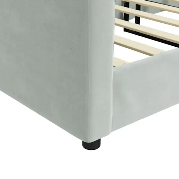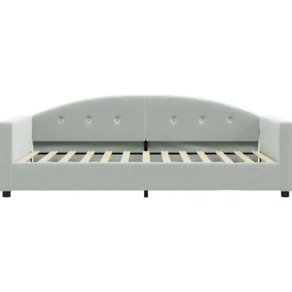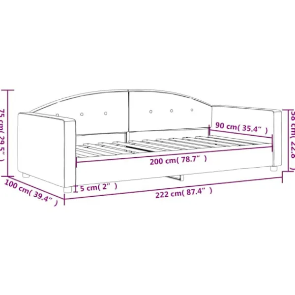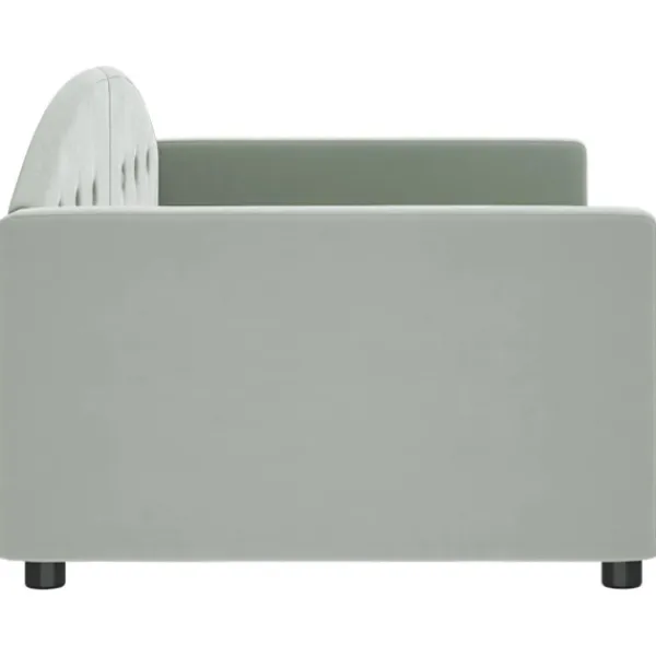 Denna 2-i-1-dagbädd, som fungerar som både en soffa och säng, är ett praktiskt och iögonfallande tillskott till ditt vardagsrum eller sovrum. Mångsidig dagbädd: Bäddsoffan kan användas som en soffa under dagen, eller som en säng på natten för att erbjuda en snabb lösning för övernattande gäster.Bekväm upplevelse: Dagbädden är gjord av sammet. Det är ett mjukt och skönt tyg som känns skönt mot huden. Dessutom är ryggstödet och armstöden på gästbädden vadderade med skum för att förbättra sittupplevelsen.Robust och stabil ram: Huvudramen på bäddsoffan är gjord av metall och massivt trä, vilket gör den mycket robust och hållbar. Dess ribbotten i plywood bidrar till bättre luftcirkulation för att hålla madrassen fräschare längre, vilket förbättrar sängens viktkapacitet och säkerställer stabilitet.Modern design: Bäddsoffan har en modern design med rena linjer och ett minimalistiskt och lätt utseende, vilket kommer att tillföra en modern stil till din interiör! Bra att känna till:Madrass ingår inte med sängen. Vi säljer ett urval av madrasser. Du kan titta i vår shop för en matchande madrass.