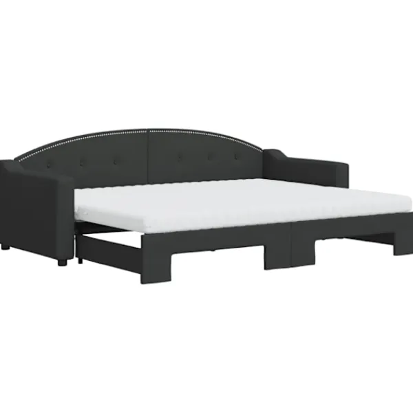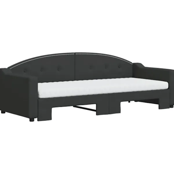Denna 2-i-1-dagbädd med extrabädd, som kan användas som både soffa och säng, blir ett praktiskt och iögonfallande tillskott till ditt vardagsrum eller sovrum. Mångsidig dagbädd: Bäddsoffan fungerar som en soffa under dagen och kan enkelt omvandlas till en dubbelsäng på natten genom att dra ut extrasängen, vilket är en bekväm lösning för övernattande gäster och för att maximera ytan. Bekväm skummadrass: Denna dagbädd levereras med två skummadrasser för maximalt stöd och optimal komfort. Slitstarkt tyg och solid konstruktion: Denna dagbädd har en robust ram av trä och metall och är klädd i slitstarkt och mjukt tyg.