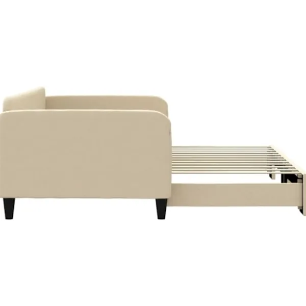 Denna 2-i-1-dagbädd med extrabädd, som kan användas som både soffa och säng, blir ett praktiskt och iögonfallande tillskott till ditt vardagsrum eller sovrum. Mångsidig dagbädd: Bäddsoffan fungerar som en soffa under dagen och kan enkelt omvandlas till en dubbelsäng på natten genom att dra ut extrasängen, vilket är en bekväm lösning för övernattande gäster och för att maximera ytan.Slitstarkt tyg: Denna gästsäng är tillverkad av tyg. Tyget har ett enkelt och rent utseende samtidigt som det andas och är hållbart.Massiv konstruktion: Bäddsoffan med trä- och metallram garanterar stabilitet. Bra att känna till:Madrasser medföljer inte denna dagbädd. Vi säljer ett urval av madrasser. Du kan titta i vår shop för matchande madrasser.