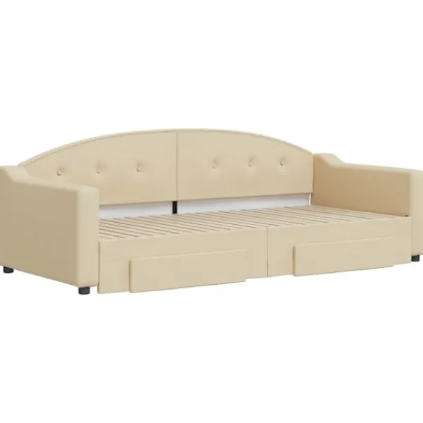 Denna 2-i-1-dagbädd med extrabädd, som kan användas som både soffa och säng, blir ett praktiskt och iögonfallande tillskott till ditt vardagsrum eller sovrum. Mångsidig dagbädd: Bäddsoffan fungerar som en soffa under dagen och kan enkelt omvandlas till en dubbelsäng på natten genom att dra ut extrasängen, vilket är en bekväm lösning för övernattande gäster och för att maximera ytan. Gott om förvaringsutrymme: Denna gästsäng har två lådor med hjul med gott om utrymme för förvaring av dina kläder, strumpor, leksaker, kuddar etc. Slitstarkt tyg och solid konstruktion: Denna dagbädd har en robust ram av trä och metall och är klädd i slitstarkt och mjukt tyg. Bra att känna till:Madrasser medföljer inte denna dagbädd. Vi säljer ett urval av madrasser. Du kan titta i vår shop för matchande madrasser.