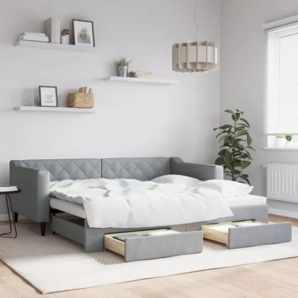 Denna 2-i-1-dagbädd med extrabädd, som kan användas som både soffa och säng, blir ett praktiskt och iögonfallande tillskott till ditt vardagsrum eller sovrum.