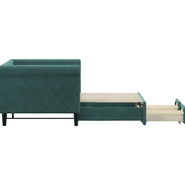 - Mjuk sammet och solid konstruktion: Denna bäddsoffa har en robust ram av trä och metall och är klädd i slitstark och mjuk sammet.