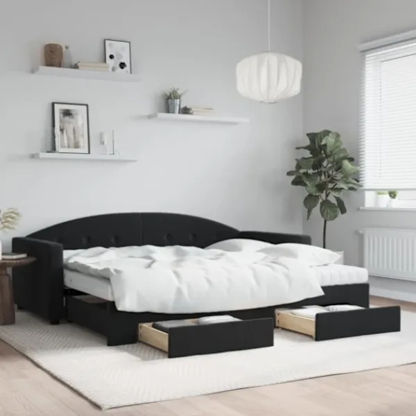 Denna 2-i-1-dagbädd med extrabädd och lådor, som kan användas som både soffa och säng, blir ett praktiskt och iögonfallande tillskott till ditt vardagsrum eller sovrum.