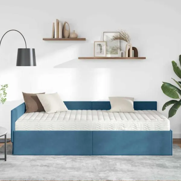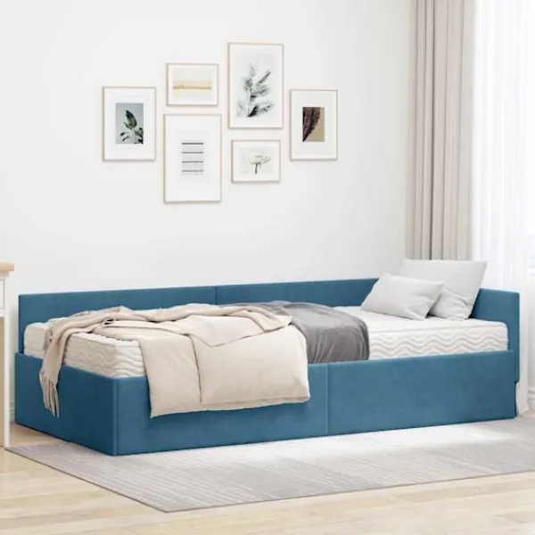 Den här sängramen i sammet med hörnmodell är den perfekta kombinationen av snygg design och praktisk funktion. Den moderna looken gör den till ett utmärkt tillskott i vilket sovrum som helst. Sammetsytan skapar inte bara en stilfull känsla utan ger också en känsla av komfort, så att du sover gott varje natt. Med en mjuk grund och en stabil konstruktion får du stil och stöd i ett.