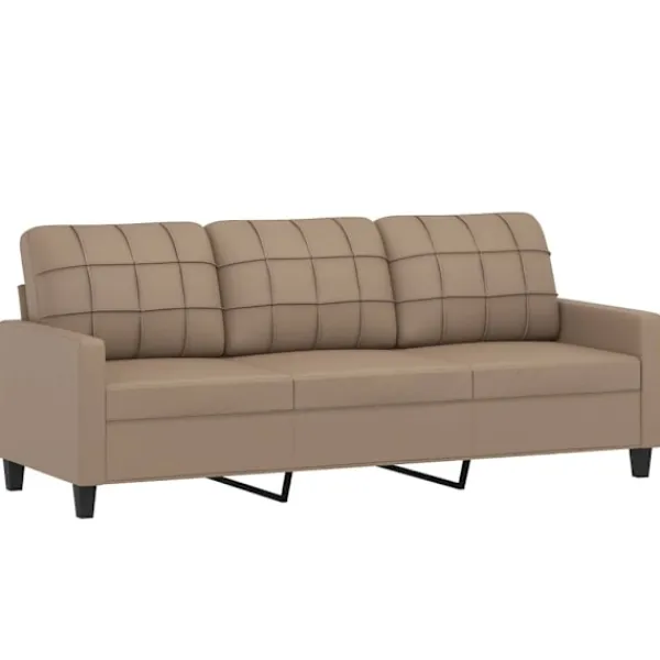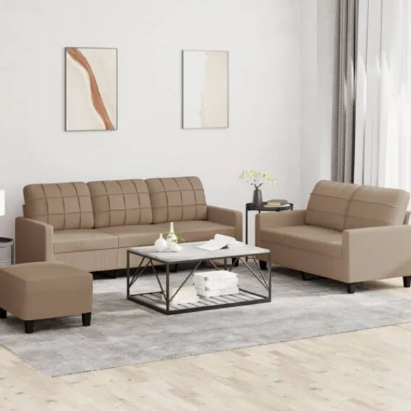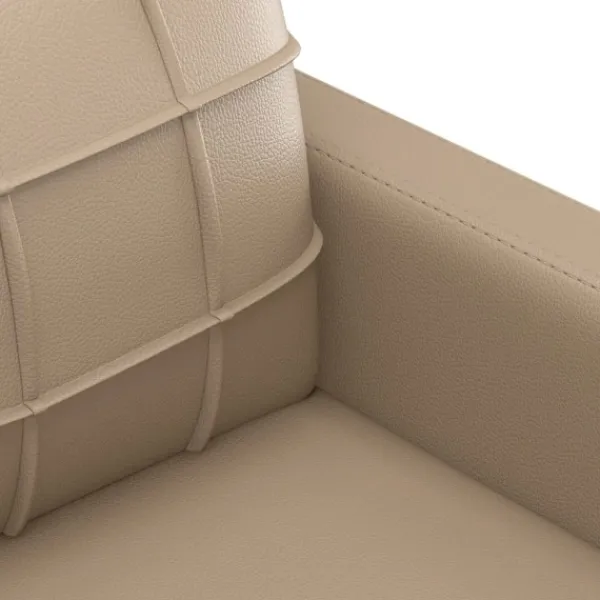 Den här fåtöljen är ett perfekt val för att läsa, titta på tv eller bara koppla av. Soffan blir en vacker detalj i ditt hem. Hållbart konstläder: Premium konstläder är ett högst slitstarkt material. Den är fläckbeständig, vilket gör den enkel att rengöra med en fuktig trasa. Den släta ytan har också ett lyxigt utseende.Robust och stabil ram: Soffans plywood- och metallram garanterar robusthet och stabilitet.Bekväm sittupplevelse: Soffan är mycket bekväm tack vare det tjockt vadderade sätet, armstöden och ryggkuddarna.Flexibel fotpall: Pallen är lämplig för att vila fötterna på när du ligger i soffan, dessutom får du en extra sittplats i ditt vardagsrum. Den enkla designen och det kompakta måttet gör den till en perfekt sittplats var som i din bostad.