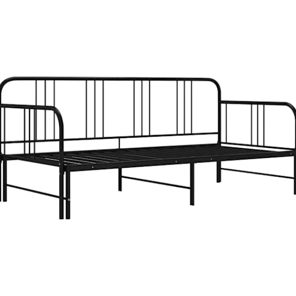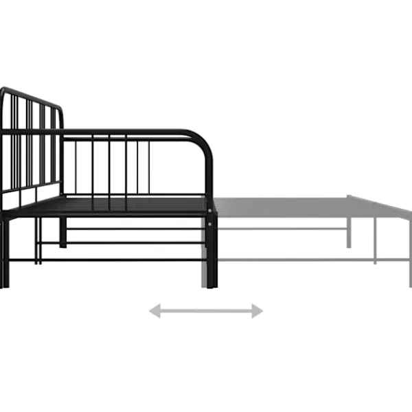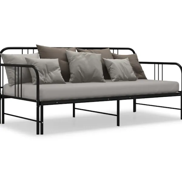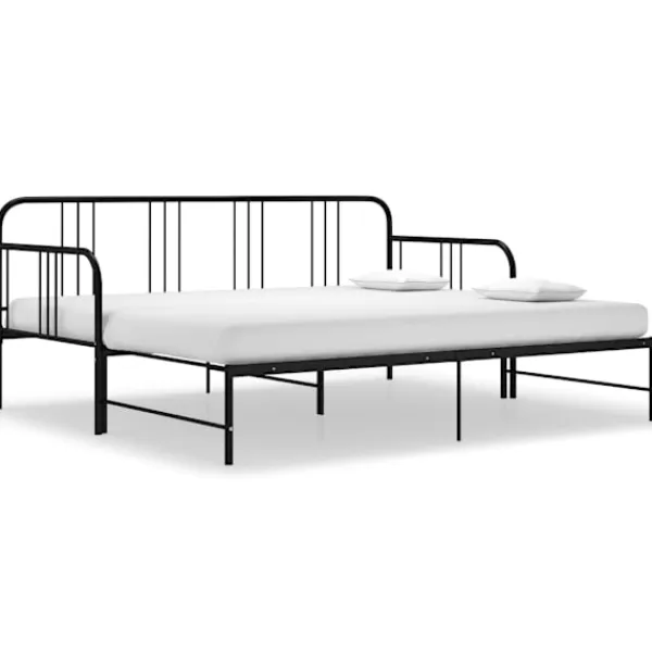 Denna mångsidiga bäddsoffa är perfekt för att ta emot oväntade övernattande gäster, samtidigt som den är ett bekvämt utrymme att sitta på under dagen. Du kan enkelt konvertera möbeln till en soffa under dagen och en skön säng under natten. Sängramen maximerar tillgänglig golvyta och har samtidigt plats för två personer, vilket gör den till ett perfekt val om du har begränsad boyta. Dessutom har sängen en ett skydd som förhindrar att användaren rullar ut i sömnen. Hela sängen har en stadig metallkonstruktion, vilket gör den mycket hållbar och lämplig för vardagsbruk. Obs: Leveransen omfattar endast sängramen. Madrasser ingår inte. Du kan hitta madrasser som passar i vår butik.