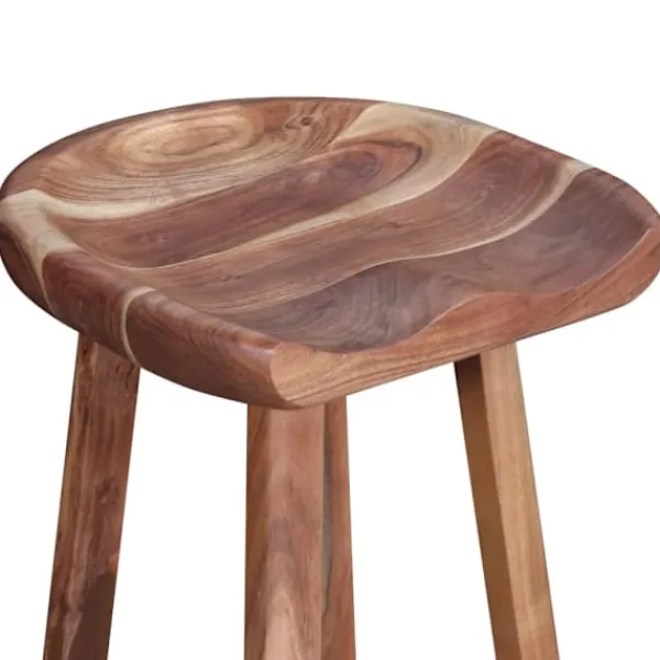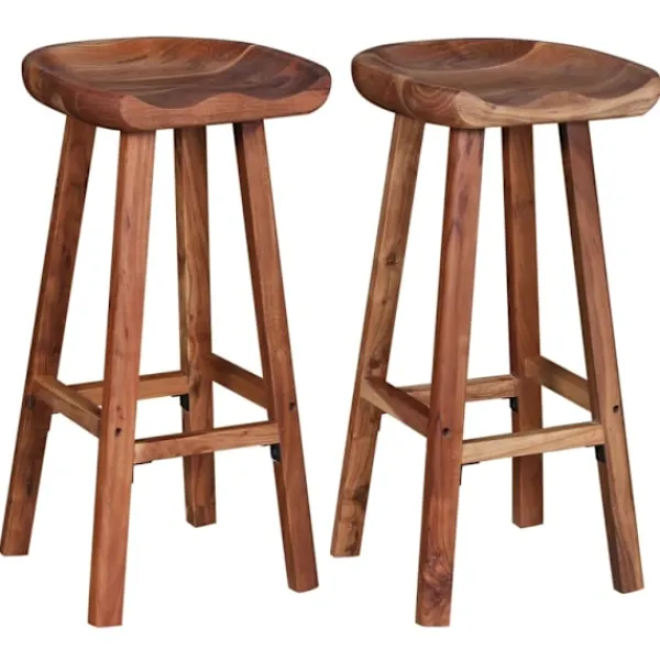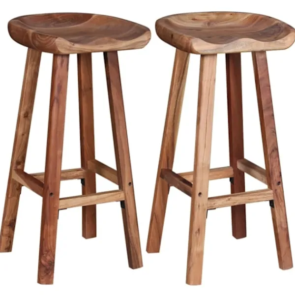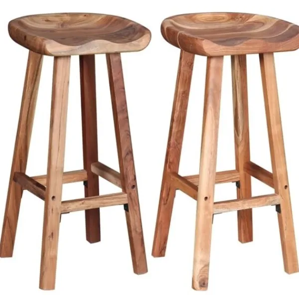 Tack vare sin enkla men tidlösa design, kommer dessa barpallar passa in med nästan alla olika typer av miljöer såsom hem, kontor, barer och caféer. Barstolarna är tillverkade i högkvalitativ akaciaträ, vilket är ett ett tropiskt träslag som är känt för att vara både väderbeständigt och hållbart. Ytan, med sin naturliga matta finish, är enkel att rengöra med en fuktig trasa. Detta par stolar är helt handgjort och hantverksskickligheten adderar till dess spektakulära retrostil. Varje steg i tillverkningsprocessen görs med stor omsorg, varesig det är polering, målning eller lackning. Leveransen innehåller 2 barstolar. Observera: Möblernas färger varierar vilket gör varje möbel unik. Leveransen är helt slumpmässig.