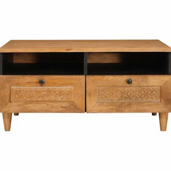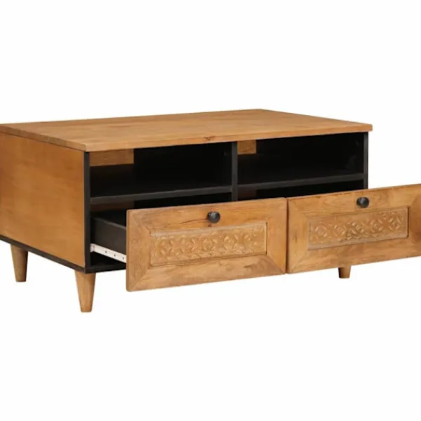 - Premium akaciaträ: Bordets yta är av massivt akaciaträ, känt för sina vackra ådringar och hållbarhet. Det här valet gör att bordet håller länge, perfekt för vilket vardagsrum som helst.