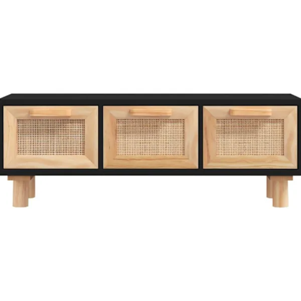 Med detta eleganta soffbord får du en känsla av elegans i din nuvarande heminredning. Hållbart material: Det konstruerade träet är av exceptionell kvalitet med slät yta och är också starkt, stabilt och fuktbeständigt.Gott om lagringsutrymme: Med 3 lådor med rottingdesign erbjuder sidobordet gott om lagringsutrymme för att hålla dina tidskrifter, böcker, DVD-skivor, multimediaenheter och andra dekorativa föremål välorganiserade och inom räckhåll.Träfötter: Träfötterna ger produkten ett naturligt och behagligt utseende samtidigt som stabiliteten säkerställs. Den smälter in med vilken inredning som helst. Observera:Varje produkt levereras med en monteringsmanual i lådan för enkel montering.