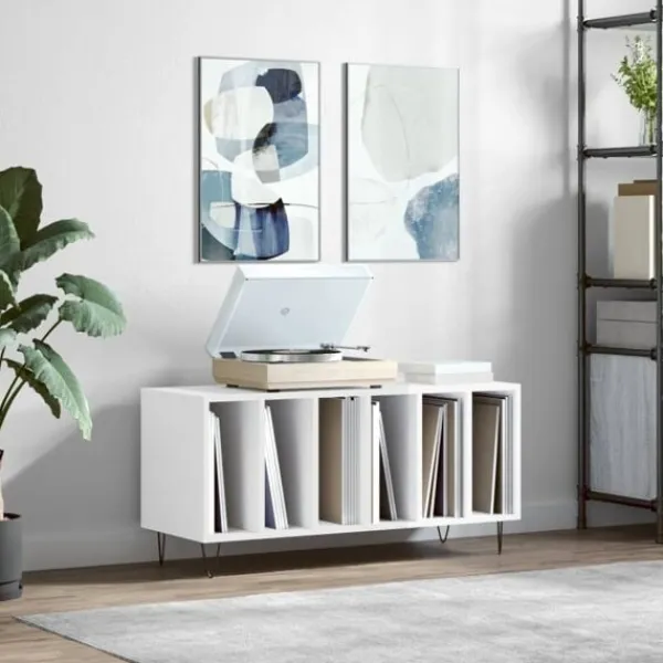 Förvara och visa upp dina vinylskivor med detta praktiska och klassiska skivskåp. Hållbart material: Det konstruerade träet är av exceptionell kvalitet med slät yta och är också starkt, stabilt och fuktbeständigt.Gott om förvaringsutrymme: Det rymliga stereoskåpet erbjuder gott om förvaringsutrymme för LP-skivor och håller din musiksamling välorganiserad.Robust bänkskiva: Den robusta ovansidan av stereoskåpet är perfekt för att placera din skivspelare eller annan elektronik.Järnben: Järnbenen utstrålar en industriell charm i din inredning samtidigt som de är stabila.