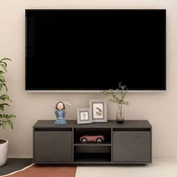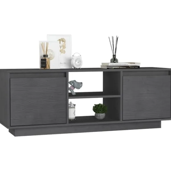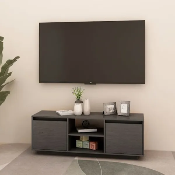 Få en känsla av elegans och bekvämlighet i ditt hem med denna trendiga TV-bänk i trä! HiFi-skåpet är tillverkat i massivt furu, vilket säkerställer dess stabilitet, hållbarhet och långvariga service. Med sina fack har detta skåp gott om utrymme för tidningar, växter, fotoramar etc. Det kan hålla ditt vardagsrum fritt från stök tack vare sin förvaringshylla.