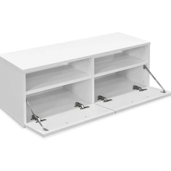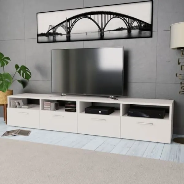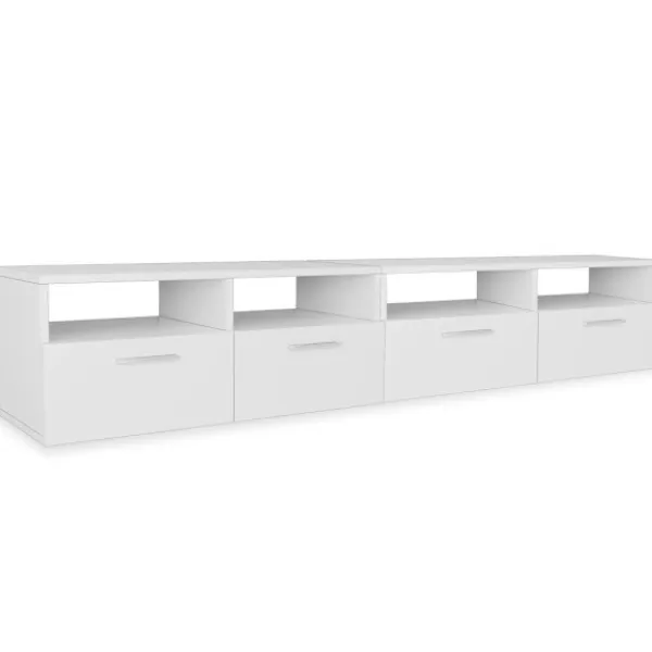 De moderna TV-bänkarna har en underskattad och praktisk design som kommer passa alla slags hemdekorer. HiFi-bänkarna är tillverkade i spånskiva med PVC-kanter och de är stabila och hållbara. De har två öppna hyllor samt två skåp med nedåtöppnande dörrar. Således finns ordentligt med förvaringsutrymme för din DVD-spelare, spelkonsol, med mera. De minimalistiskt utformade TV-bänkarna kommer bli ett utmärk tillskott till ditt sov- eller vardagsrum. Leveransen omfattar 2 TV-bänkar