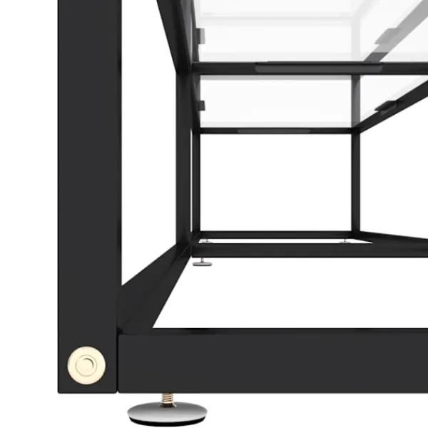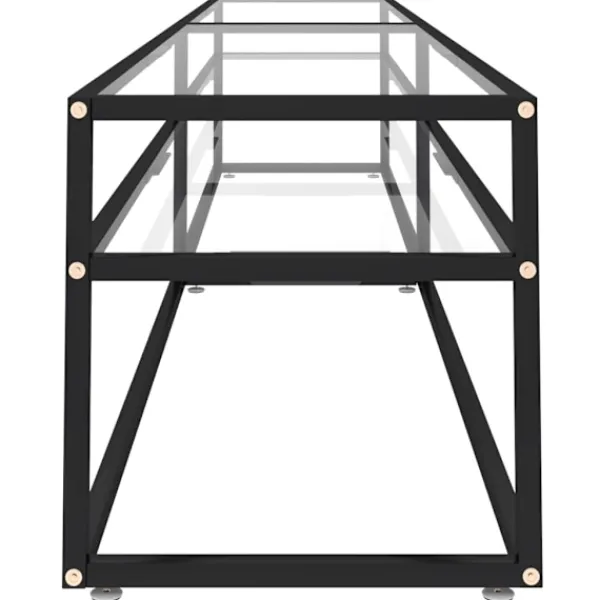 Tv-bänken med en stilren och slimmad design blir ett praktiskt tillskott i ditt hem. Stereobänken är tillverkad i härdat glas som är robust och stabilt. Den är även enkel att rengöra med en fuktig trasa. Den pulverlackerade stålramen gör den stadigare. Hyllan under bordsskivan har gott om plats för att hålla dvd:er, mediaenheter, böcker och andra småsaker organiserade och inom räckhåll.
