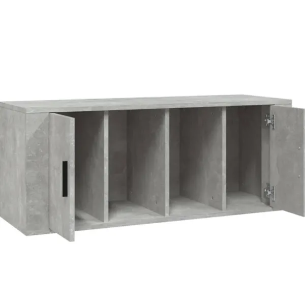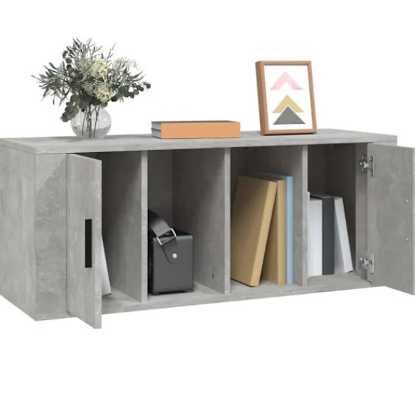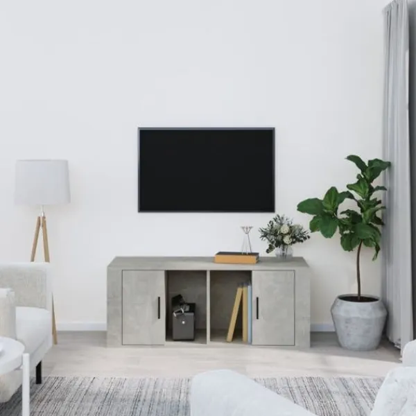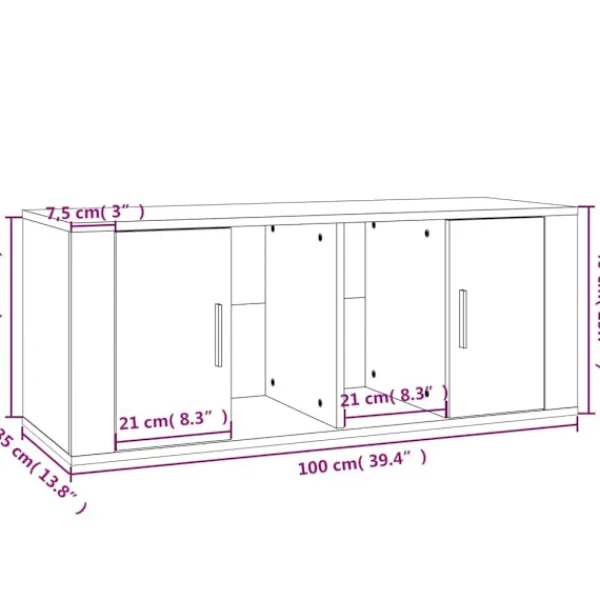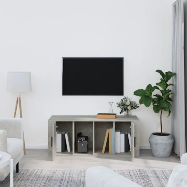Denna stadiga tv-bänk blir ett blickfång i ditt rum med sin trendiga men praktiska design. Robust material: Det konstruerade träet är av exceptionell kvalitet med slät yta och är också starkt, stabilt och fuktbeständigt. Tv-bänken är tillverkad av konstruerat trä och är lätt att rengöra.Gott om förvaringsutrymme: Tv-bänken har 4 fack som gör det till en bra plats för förvaring av dina tidskrifter, DVD-skivor eller andra föremål.Praktisk dörr: Håll dina väsentligheter fria från damm genom att gömma dem i denna medieenhet.Visningsfunktion: Medieenheten har en robust ovansida, på vilken du kan placera dekorativa föremål som fotoramar och krukväxter. Observera:Varje produkt levereras med en monteringsmanual i lådan för enkel montering.