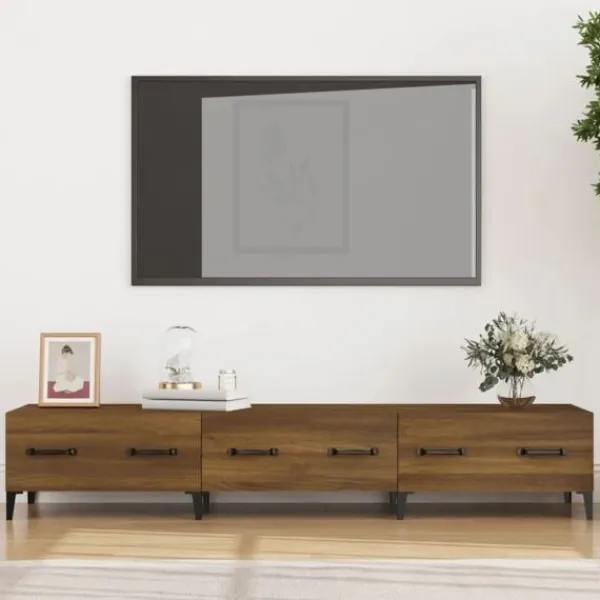 Denna moderna tv-bänk blir ett blickfång i ditt vardagsrum eller filmrum. Robust material: Det konstruerade träet är av exceptionell kvalitet med slät yta och är också starkt, stabilt och fuktbeständigt.Gott om lagringsutrymme: Denna moderna medieenhet håller dina medieapparater organiserade med de medföljande lådorna.Stabil ovansida: Tv-möbelns ovansida är en bra plats att ställa saker som böcker och annan inredning. Observera:Varje produkt levereras med en monteringsmanual i lådan för enkel montering.