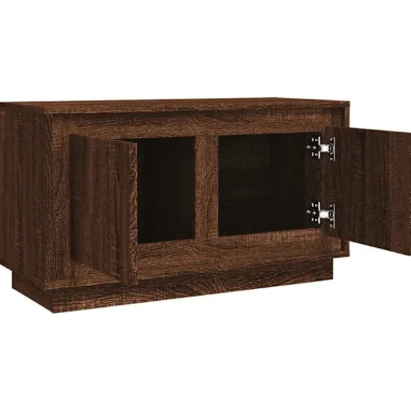 Tack vare sin trendiga och praktiska design blir denna tv-bänk ett riktigt blickfång i ditt rum. Hållbart material: Det konstruerade träet är av exceptionell kvalitet med slät yta och är också starkt, stabilt och fuktbeständigt.Gott om förvaring: Med 2 förvaringsfack har tv-möbeln gott om förvaringsutrymme för att hålla tidningar, DVD-skivor och andra föremål välorganiserade.Robust topp: Tv-bänkens överdel är en säker yta för att visa dekorativa föremål, fotoramar eller krukväxter.Praktiska dörrar: Håll dina väsentligheter fria från damm genom att gömma dem i denna medieenhet. Bra att känna till:För att göra monteringen så enkel som möjligt, levereras varje produkt med en bruksanvisning.