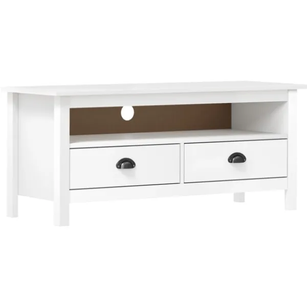 Om du vill tillföra en rustik charm i din inredning är vår TV-bänk i massivt trä ett perfekt val. Skänken är tillverkad i massiv furu, vilket gör den stabil och robust. Stereobänken har 2 lådor med skålhandtag samt 1 utrymme så att du får gott om förvaringsutrymme att visa upp eller förvara dina saker organiserat. OBS! Färgerna varierar på TV-bänken vilket gör varje möbel unik.