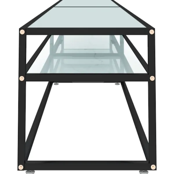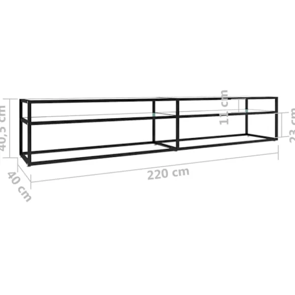 Tv-bänken med en stilren och slimmad design blir ett praktiskt tillskott i ditt hem. Stereobänken är tillverkad i härdat glas som är robust och stabilt. Den är även enkel att rengöra med en fuktig trasa. Den pulverlackerade stålramen gör den stadigare. Hyllan under bordsskivan har gott om plats för att hålla dvd:er, mediaenheter, böcker och andra småsaker organiserade och inom räckhåll.