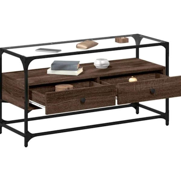 Denna stadiga tv-bänk blir ett blickfång i ditt rum med sin trendiga men praktiska design.