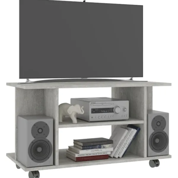 Tack vare sin trendiga och praktiska design blir denna TV-bänk ett riktigt blickfång i ditt rum. TV-bänken är tillverkad i konstruerat trä som säkerställer stadighet, hållbarhet och en lång livslängd. Den är utformad med 4 öppna hyllor med gott om plats för dina tidningar, böcker, DVD-spelare, mottagare och medieenheter. Dessutom kan du enkelt flytta runt den tack vare dess 4 hjul varav 2 som kan låsas. TV-bänken är enkel att rengöra med en fuktig duk och monteras med de medföljande tillbehören.
