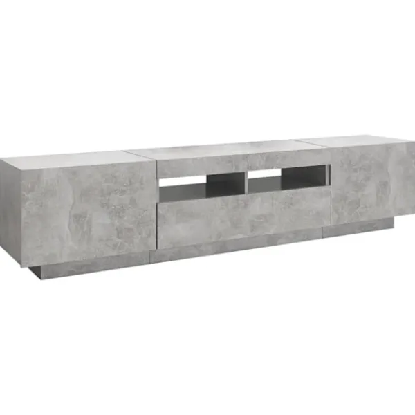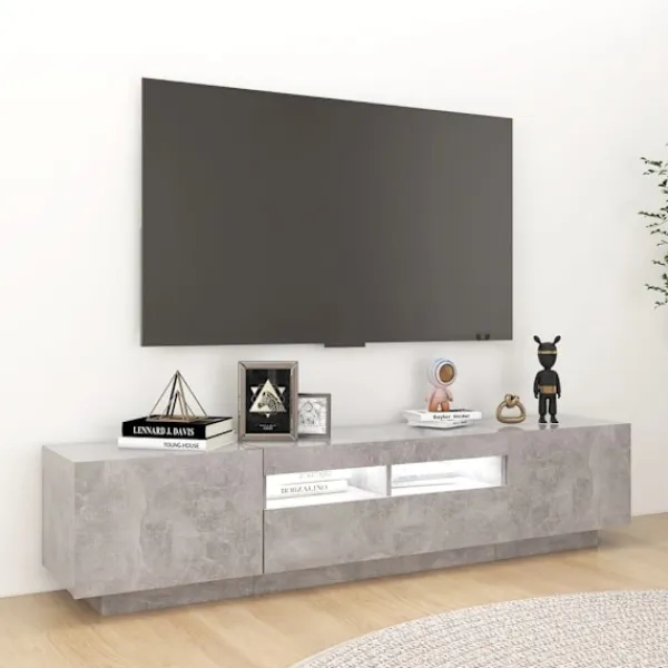 Tack vare sin trendiga och praktiska design blir denna TV-bänk med LED-belysning ett riktigt blickfång i ditt rum. Denna TV-bänk har en robust konstruktion som gör det mycket hållbart. Det finns gott om utrymme för att förvara din DVD-spelare, spelkonsol, strömenhet och mediebärare prydligt organiserade. Denna TV-bänk har RGB LED-lampor, med olika menyer för att ändra färg på lamporna och ställa in automatisk färgjustering. LED-lamporna understryker det moderna utseendet och bidrar till dess trendiga känsla. Dessutom är denna TV-enhet lätt att rengöra med en fuktig trasa. Obs: Denna tv-bänk består av 1 skåp med LED-lampor och 1 skåp som kan delas upp i 2 små skåp.Denna produkt har en USB-kontakt, men den certifierade 5V USB-strömkällan ingår inte.