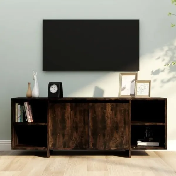 Denna TV-bänk blir en mittpunkt i ditt vardagsrum. Detta bord har en stabil och hållbar konstruktion. Tv-bänken är utrustad med 2 dörrar och 2 hyllor som är perfekt för att hålla dina DVD-skivor, spelkonsol, tidskrifter och andra föremål snyggt organiserade. Dessutom är tv-bänken lätt att rengöra med en fuktig trasa.
