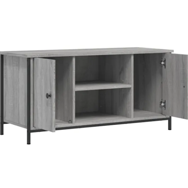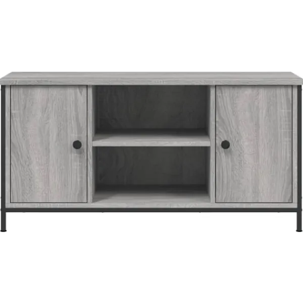 Denna tv-bänk i klassisk stil blir ett praktiskt blickfång i inredningen. Hållbart material: Det konstruerade träet är av exceptionell kvalitet med slät yta och är också starkt, stabilt och fuktbeständigt.Gott om förvaringssutrymme: TV-bänken har 2 fack med dörrar och 2 öppna hyllor för att hålla DVD-spelare, spelkonsoler, streamingenheter och mediebärare inom räckhåll och snyggt organiserade.Järnben: Järnbenen utstrålar en industriell charm i din inredning samtidigt som de är stabila.Visningsfunktion: Den robusta ovansidan av skåpet är lämplig för att visa dekorativa föremål som fotoramar och växter på. Varning:För att förhindra att den välter måste denna produkt användas tillsammans med det medföljande väggfästet.