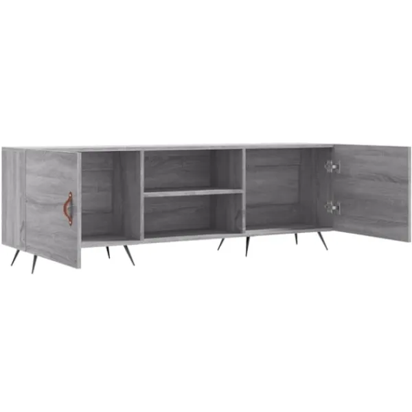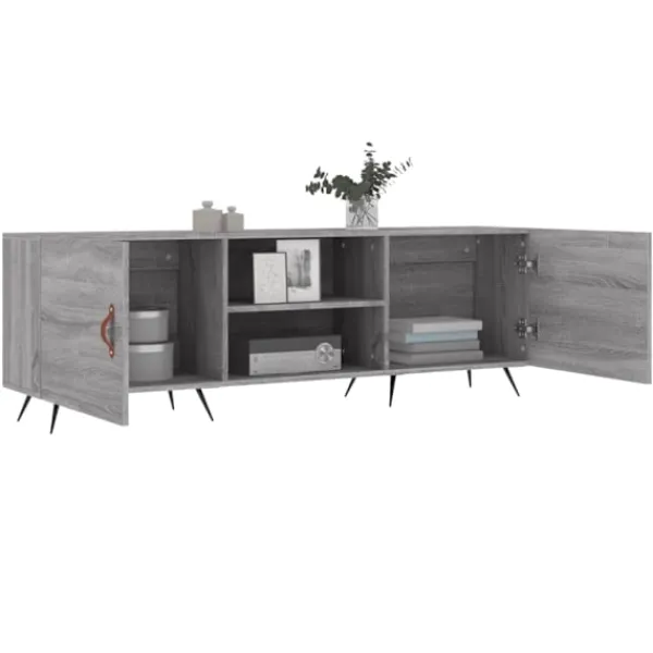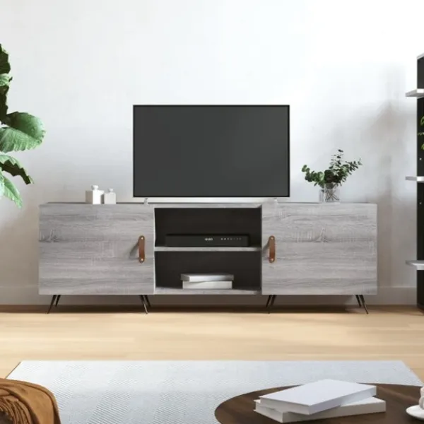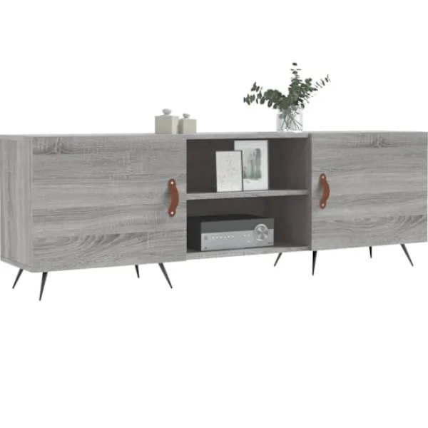 Denna stadiga tv-bänk blir ett blickfång i ditt rum med sin trendiga men praktiska design. Robust material: Det konstruerade träet är av exceptionell kvalitet med slät yta och är också starkt, stabilt och fuktbeständigt. Tv-bänken är tillverkad av konstruerat trä och är lätt att rengöra.Gott om förvaringsutrymme: Tv-bänken har 4 fack som gör det till en bra plats för förvaring av dina tidskrifter, DVD-skivor eller andra föremål.Visningsfunktion: Den robusta ovansidan av medieenheten är lämplig för att visa dekorativa föremål som fotoramar och växter.Praktisk dörr: Håll dina väsentligheter fria från damm genom att gömma dem i denna medieenhet.Järnben: Järnbenen utstrålar en industriell charm i din inredning samtidigt som du garanteras stabilitet. Varning:För att förhindra att den välter måste denna produkt användas med den medföljande monteringsanordningen för vägg