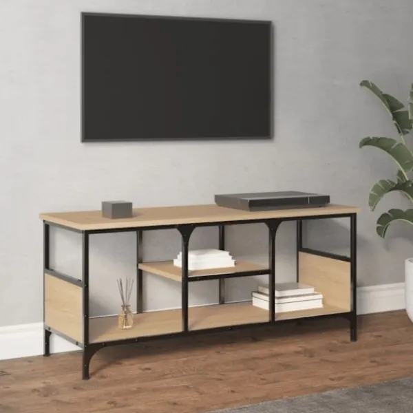 - Robust material: Det konstruerade träet är av exceptionell kvalitet med slät yta och är också starkt, stabilt och fuktbeständigt. Tv-bänken är tillverkad av konstruerat trä och är lätt att rengöra med en fuktig trasa.