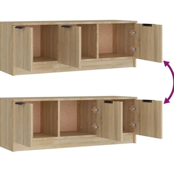 Denna tv-bänk i klassisk stil blir ett blickfång i inredningen. Robust material: Det konstruerade träet är av exceptionell kvalitet med slät yta och är också starkt, stabilt och fuktbeständigt.Gott om förvaringsutrymme: Skåpet har fack för att hålla spelkonsoler och medieenheter inom räckhåll och prydligt organiserade. Tv-bänken har också dörrar som skyddar föremål från damm.Stabil ovansida: Ovansidan av denna tv-enhet fungerar som en bra plats att ställa föremål som böcker och andra dekorationer.Flexibel dörr: Dörren på mittenfacket kan monteras på antingen vänster eller höger sida efter vad du föredrar.
