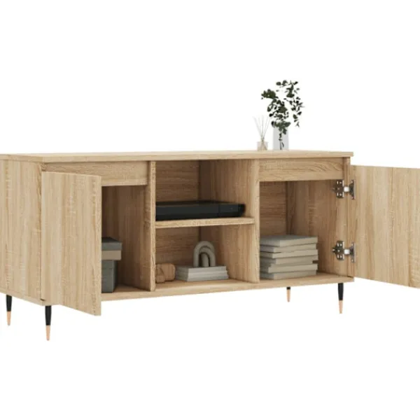 - Robust material: Det konstruerade träet är av exceptionell kvalitet med slät yta och är också starkt, stabilt och fuktbeständigt. Tv-bänken är tillverkad av konstruerat trä och är lätt att rengöra med en fuktig trasa.