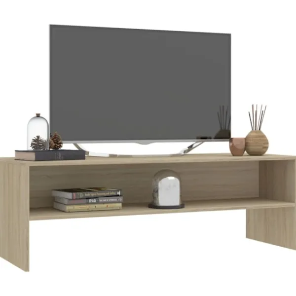 Denna tv-bänk i vintage stil, tillverkad av konstruerat trä, blir ett tidlöst tillskott i din heminredning. Den har ett öppet fack för förvaring av multimediaapparater, spelkonsoler och tidskrifter. Dessutom är tv-bänken lätt att rengöra med en fuktig trasa.