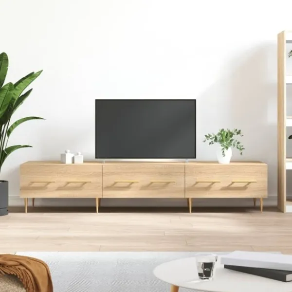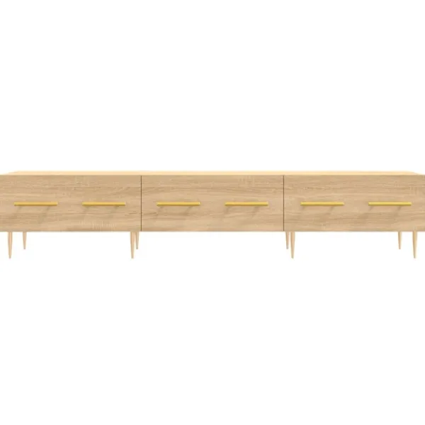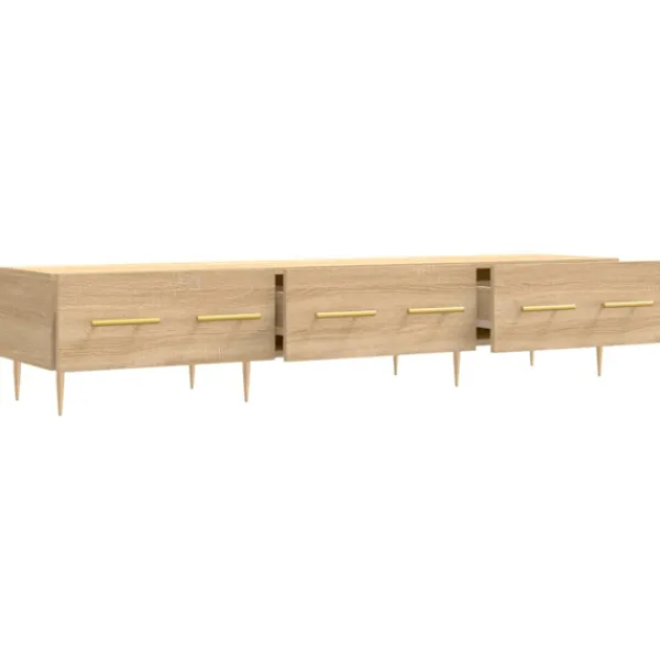Denna stadiga tv-bänk blir ett blickfång i ditt rum med sin trendiga men praktiska design. Robust material: Det konstruerade träet är av exceptionell kvalitet med slät yta och är också starkt, stabilt och fuktbeständigt. Tv-bänken är tillverkad av konstruerat trä och är lätt att rengöra.Gott om förvaringsutrymme: Tv-bänken har 3 lådor som gör det till en bra plats för förvaring av dina tidskrifter, DVD-skivor eller andra föremål.Visningsfunktion: Den robusta ovansidan av medieenheten är lämplig för att visa dekorativa föremål som fotoramar och växter.Järnben: Järnbenen utstrålar en industriell charm i din inredning samtidigt som du garanteras stabilitet.