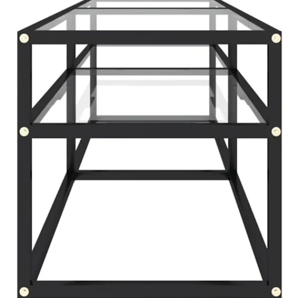 Stereobänken är tillverkad i härdat glas som är robust och stabilt. Den är även enkel att rengöra med en fuktig trasa. Den pulverlackerade stålramen gör den stadigare. Hyllan under bordsskivan har gott om plats för att hålla dvd:er, mediaenheter, böcker och andra småsaker organiserade och inom räckhåll.