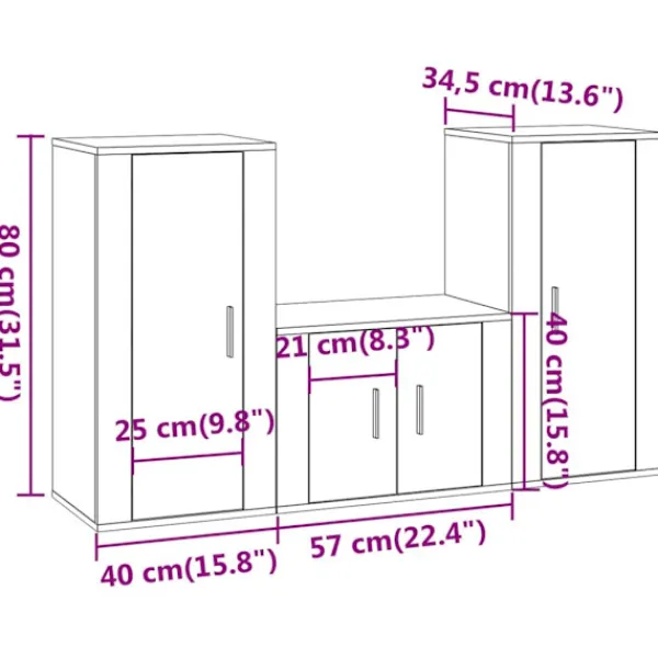 - 2 x TV-skåp: 40 x 34,5 x 80 cm (L x B x H)