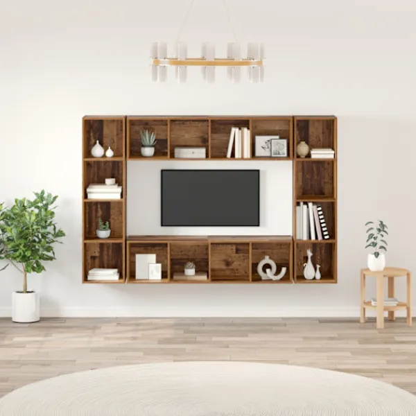 - Inkluderade komponenter: Setet innehåller fyra bra hyllor som går att anpassa för medieenheter, böcker eller prydnader. Hyllorna är robusta och ger stiliga förvaringslösningar.
