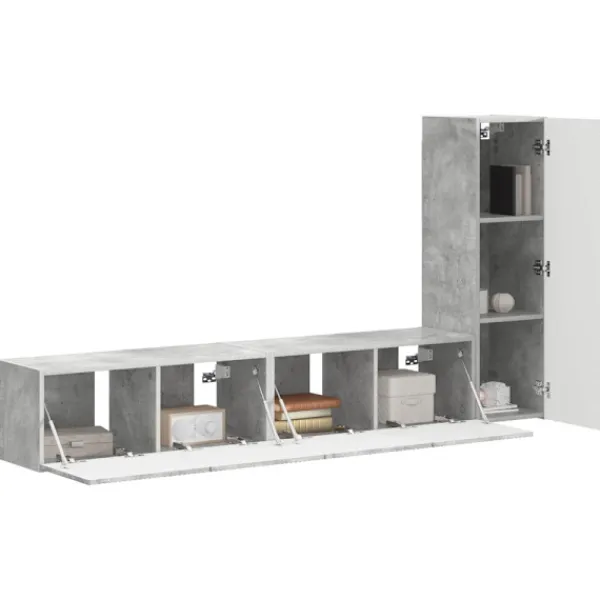 Detta TV-möbelset är en snygg mittpunkt som visar modern hantverksskicklighet med sina rena linjer och enkla stil. Det passar perfekt i moderna hem och lyfter vilket vardagsrum som helst med sin stilrena look, samtidigt som det erbjuder smarta förvaringslösningar. Gjort av konstruerat trä, förenar det funktion och stil, och ger både estetik och praktisk användning. Detta set är skapat för att passa olika bostadsutrymmen, vilket ger en harmonisk känsla överallt.